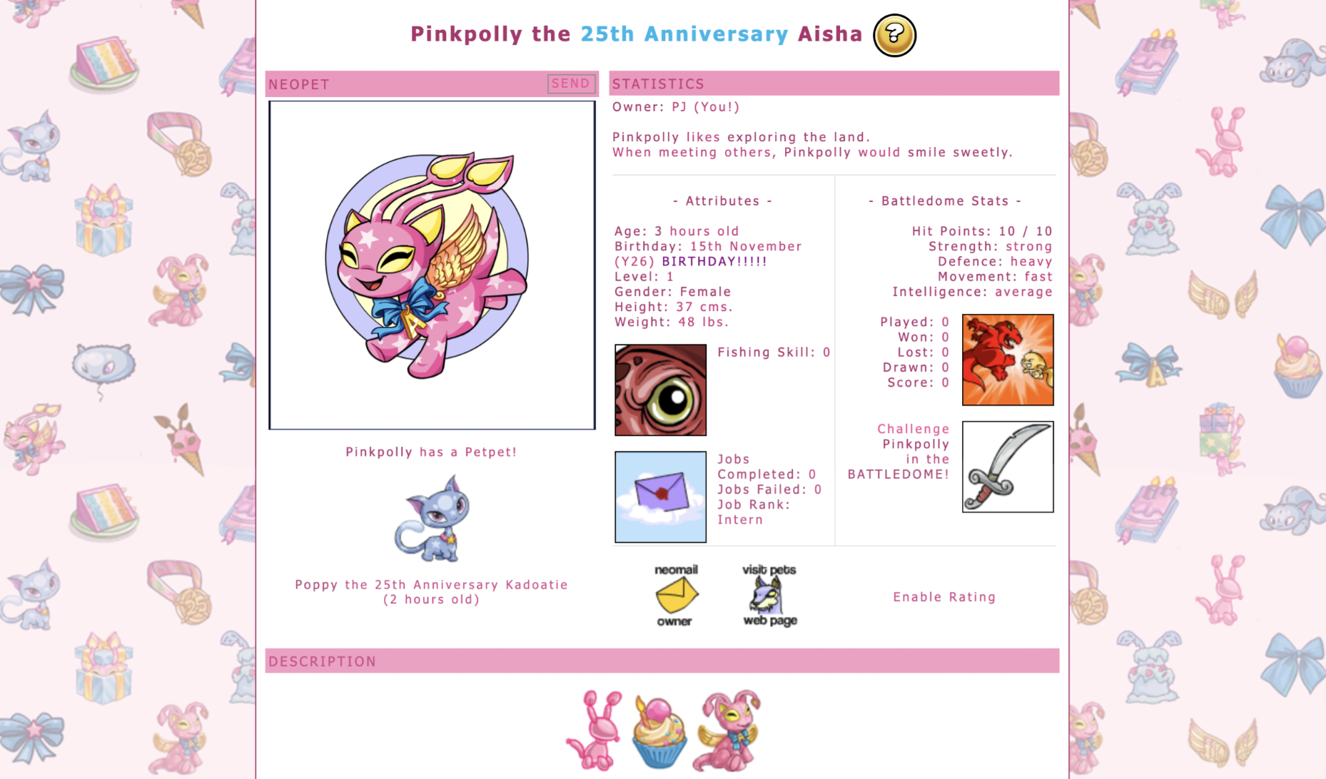 The last page I built was in 2001 or something. It was for my beloved Neopet, an Aisha called MidnightHikari90. It had tables inside tables, frames that didn't scroll properly, and fireworks that exploded when you clicked your mouse.